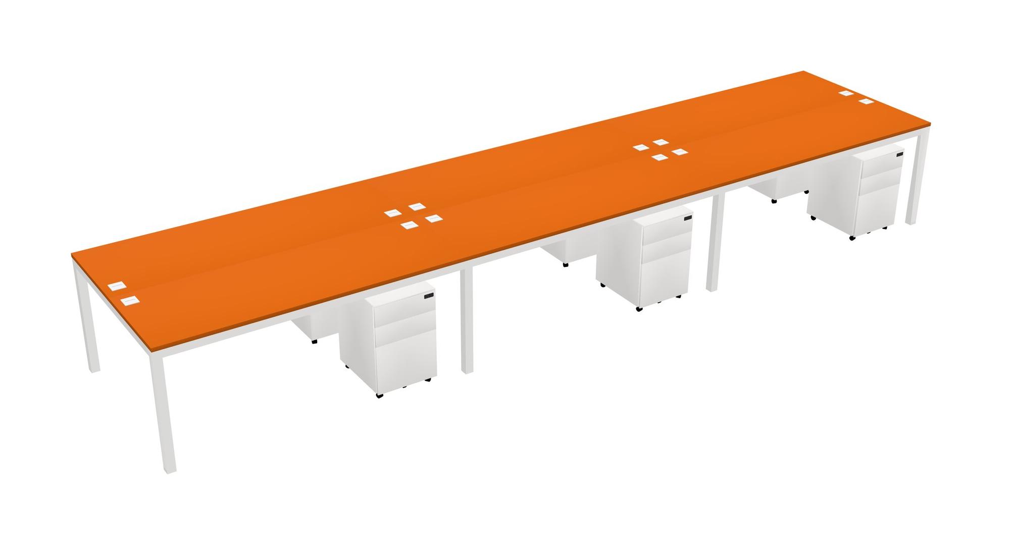 Orange Shared Rectangular Office Desk With Metal Mobile Drawers For 6 Persons
