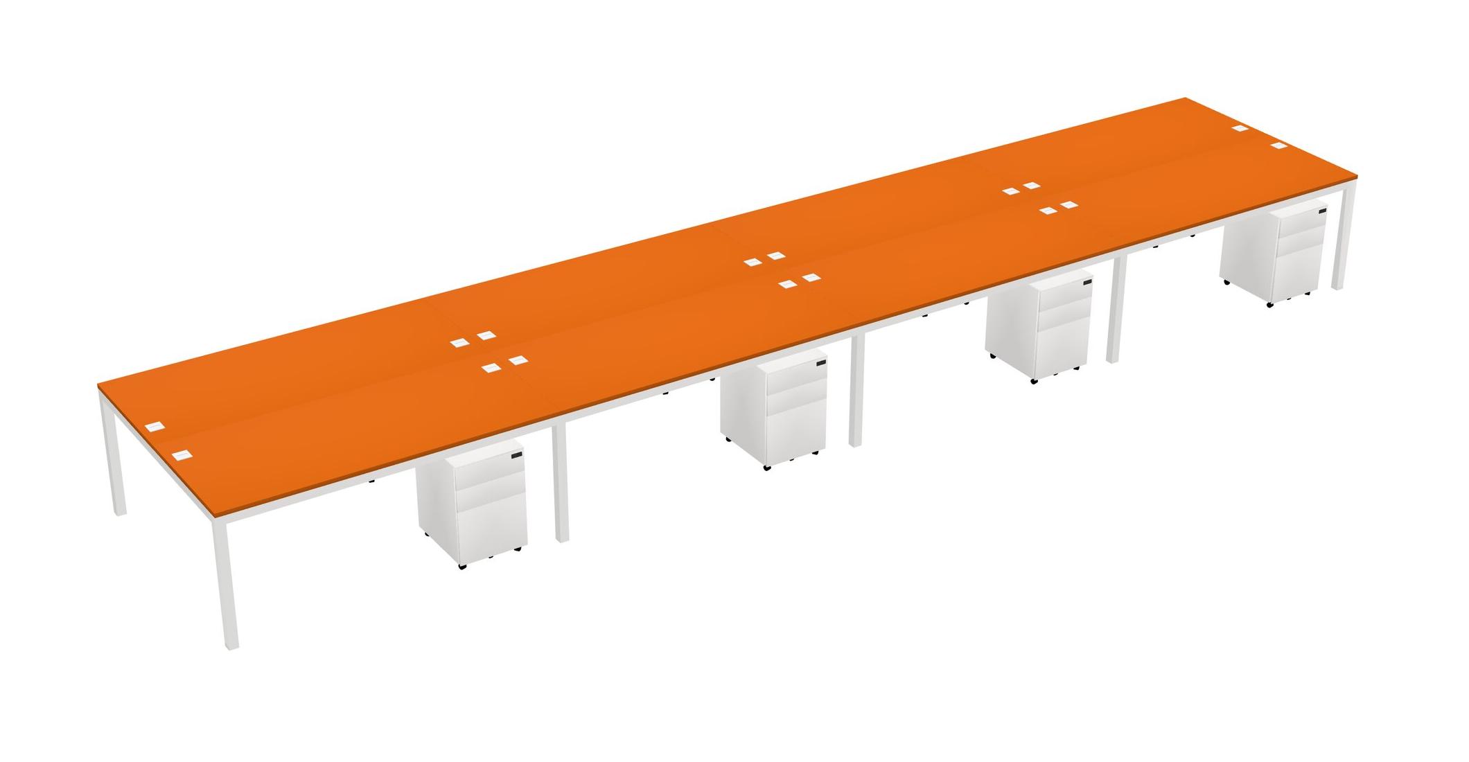 Orange Shared Rectangular Office Desk With Metal Mobile Drawers For 8 Persons
