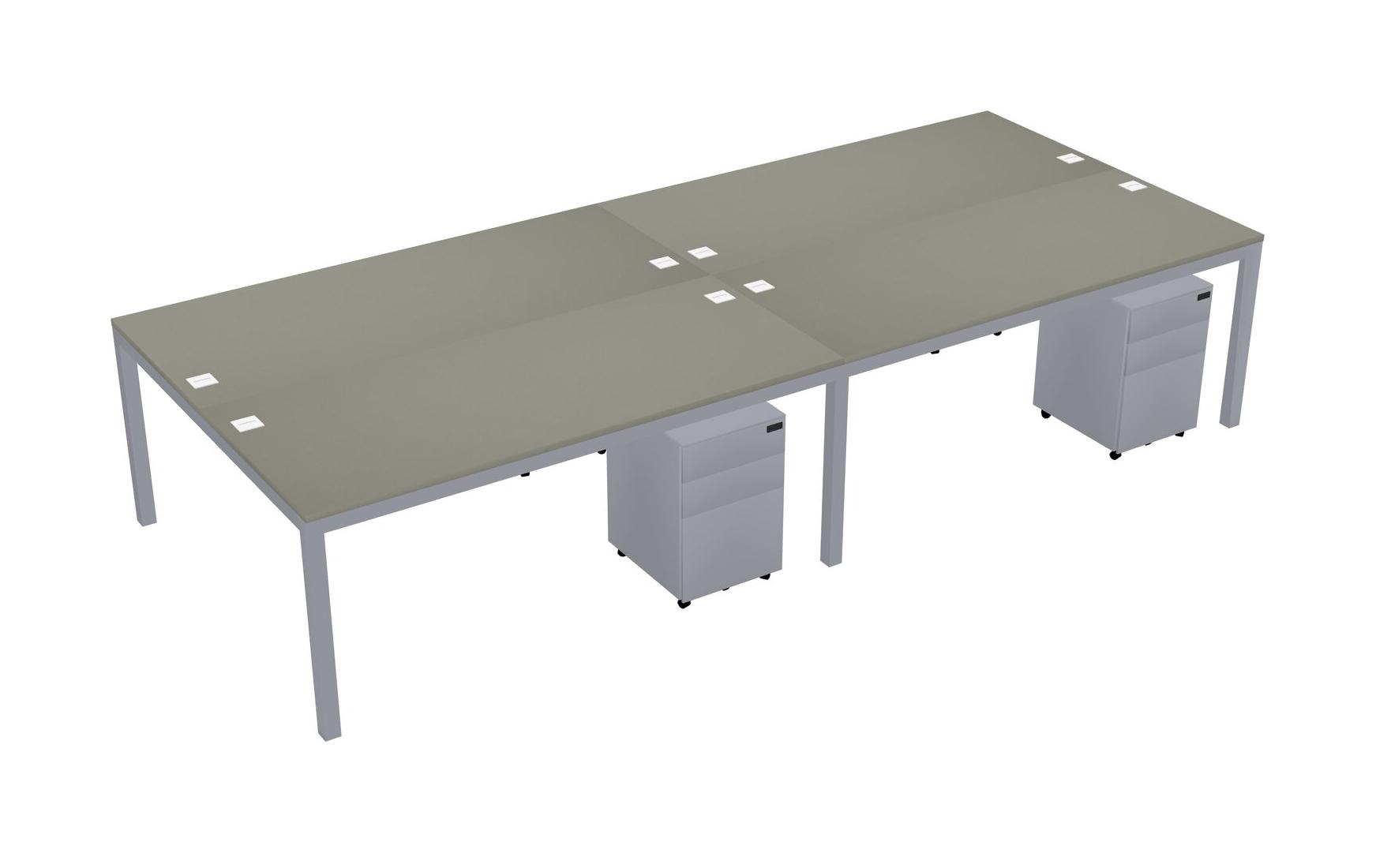 Grey Shadows Shared Rectangular Office Desk With Metal Mobile Drawers For 4 Persons
