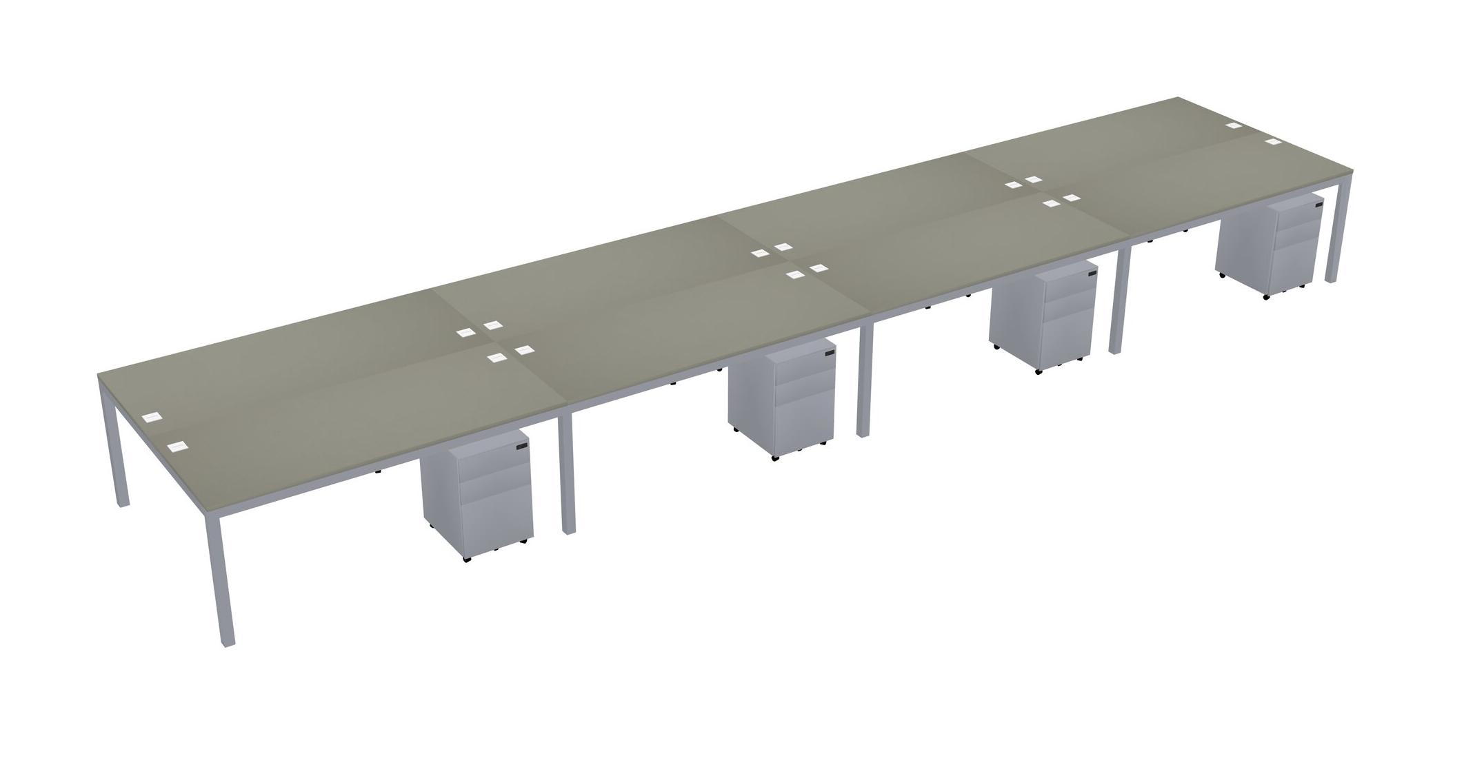 Grey Shadows Shared Rectangular Office Desk With Metal Mobile Drawers For 8 Persons
