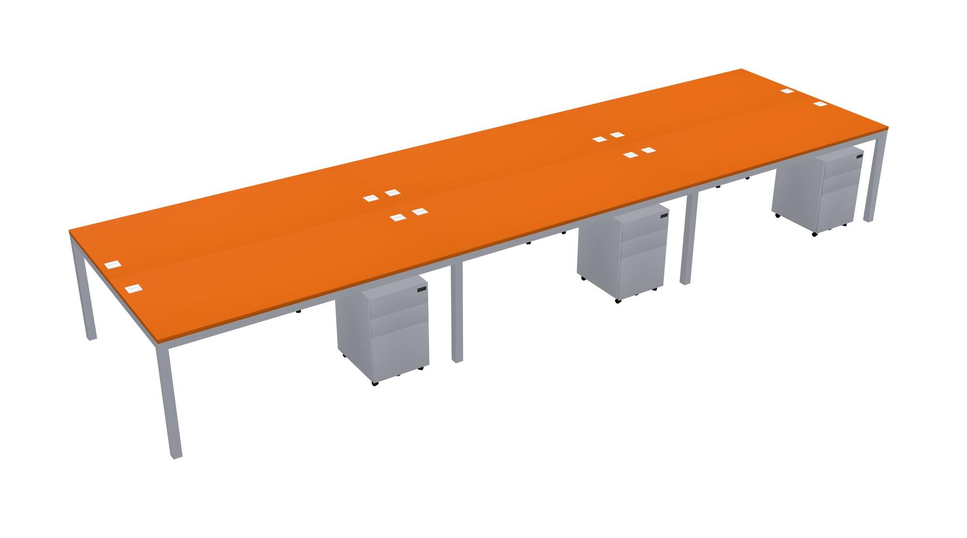 Orange Shared Rectangular Office Desk With Metal Mobile Drawers For 6 Persons