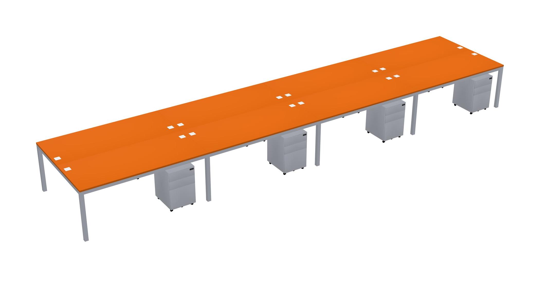 Orange Shared Rectangular Office Desk With Metal Mobile Drawers For 8 Persons