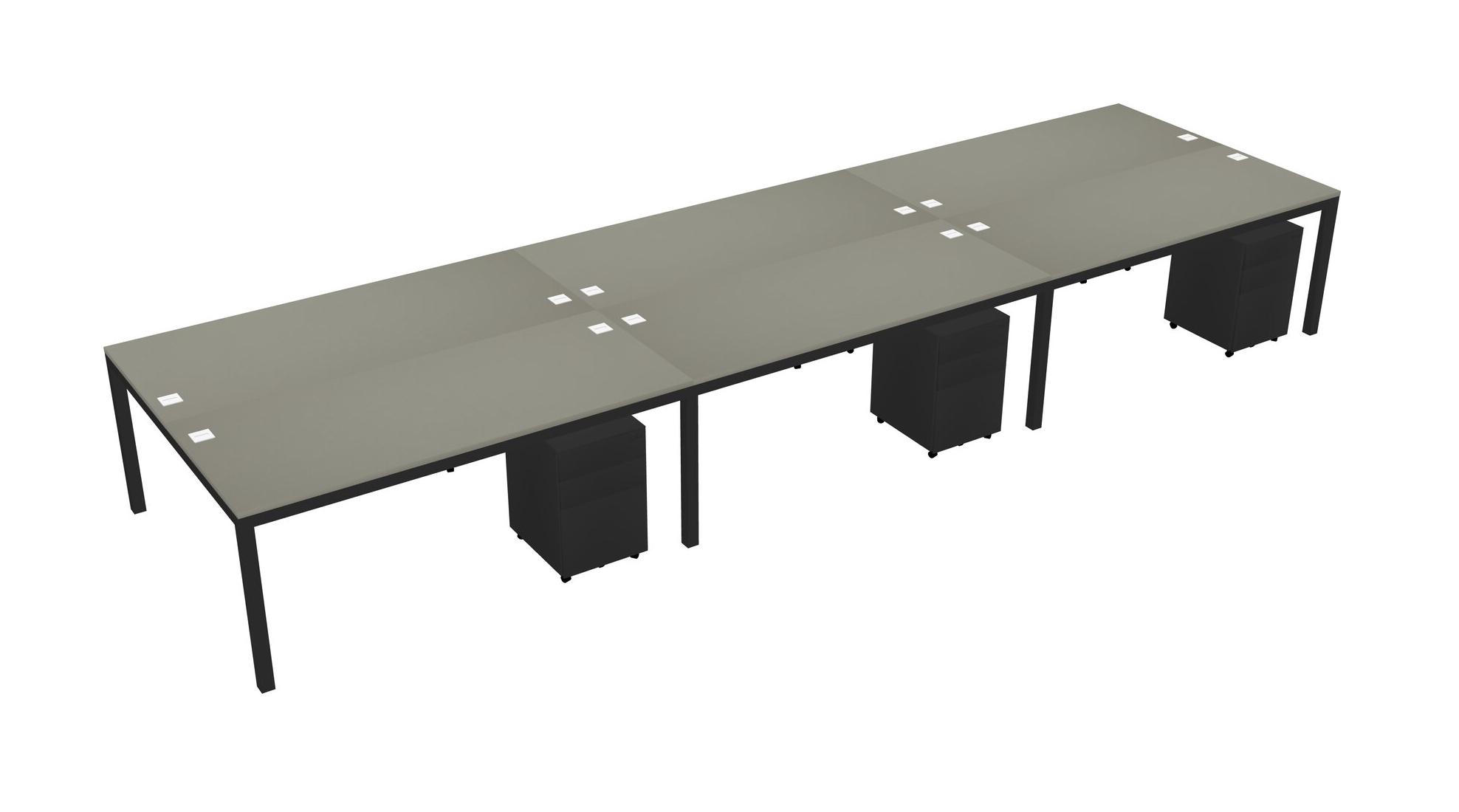 Grey Shadows Shared Rectangular Office Desk With Metal Mobile Drawers For 6 Persons