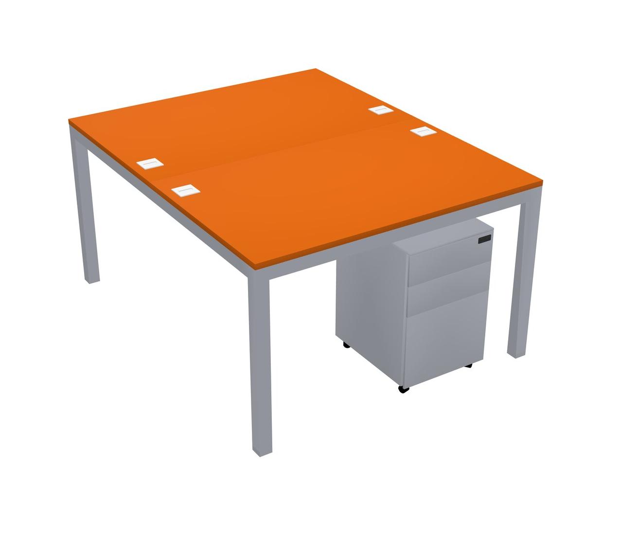 Orange Shared Rectangular Office Desk With Metal Mobile Drawers For 2 Persons