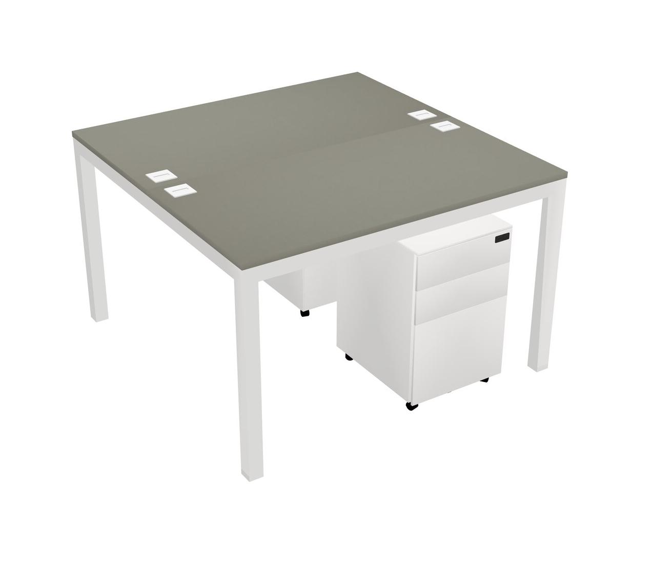 Grey Shadows Shared Rectangular Office Desk With Metal Mobile Drawers For 2 Persons