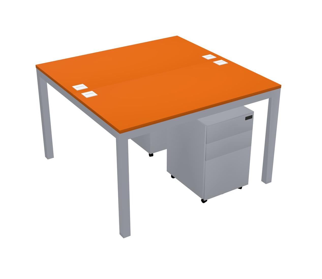 Orange Shared Rectangular Office Desk With Metal Mobile Drawers For 2 Persons