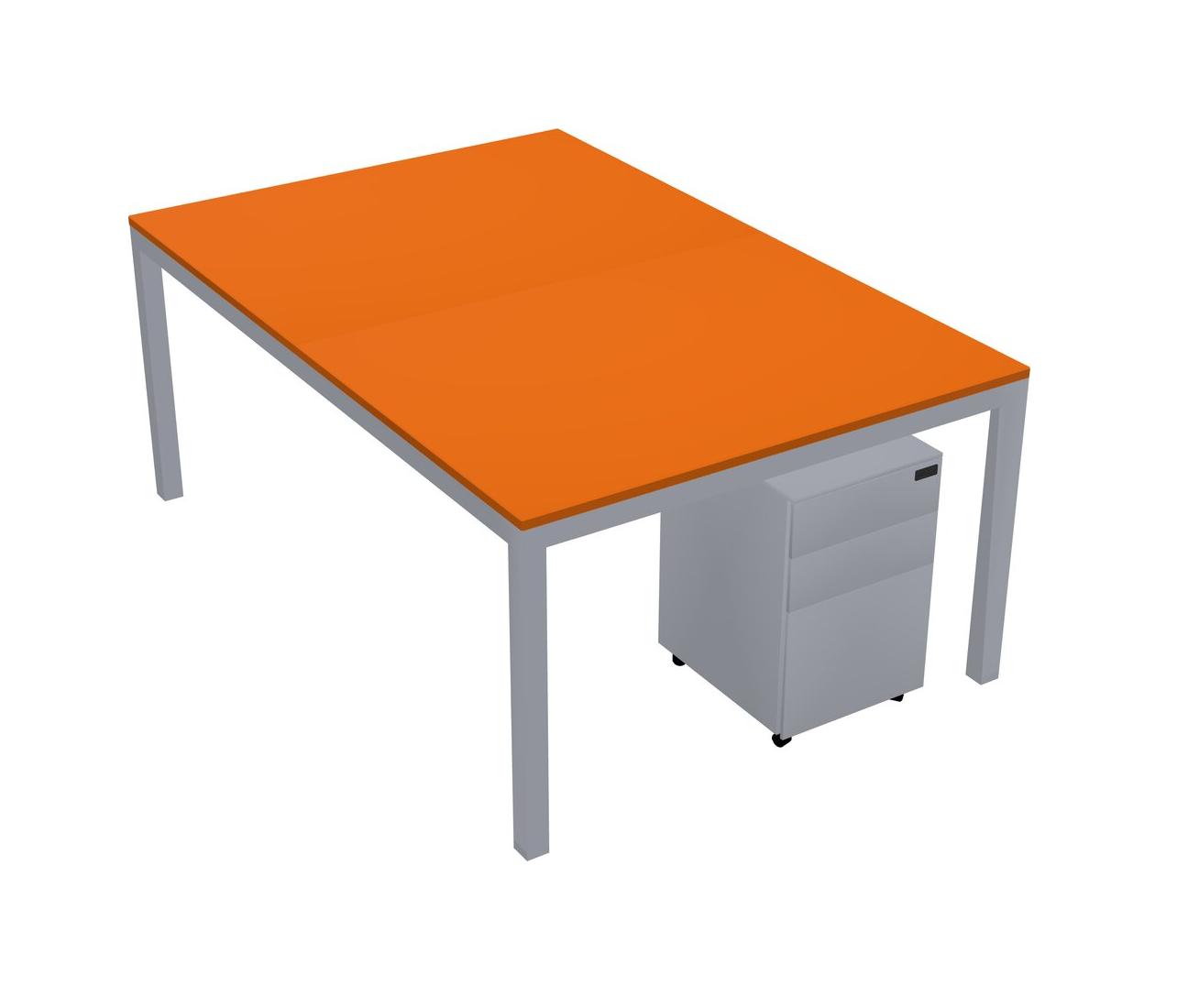 Orange Shared Rectangular Office Desk With Metal Mobile Drawers For 2 Persons