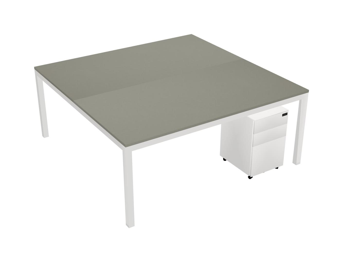 Grey Shadows Shared Rectangular Office Desk With Metal Mobile Drawers For 2 Persons
