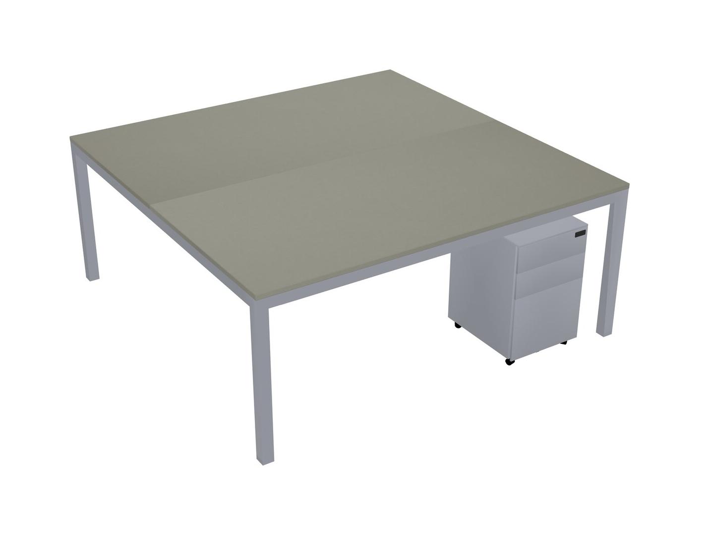 Grey Shadows Shared Rectangular Office Desk With Metal Mobile Drawers For 2 Persons