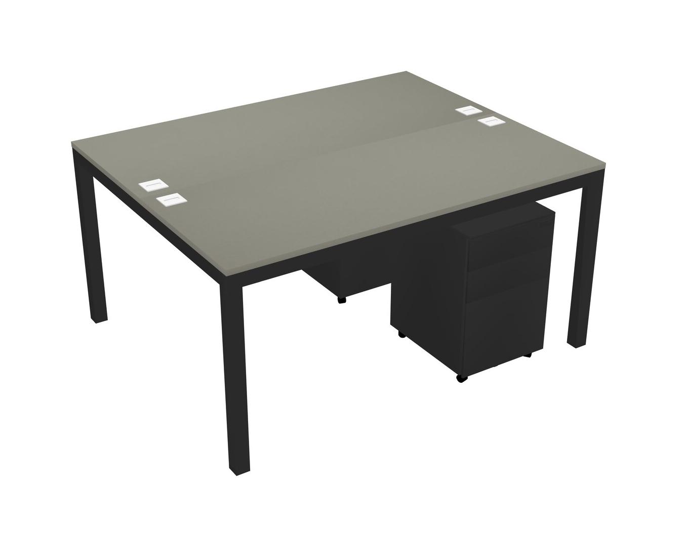 Grey Shadows Shared Rectangular Office Desk With Metal Mobile Drawers For 2 Persons
