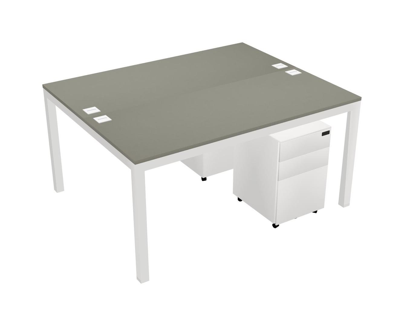 Grey Shadows Shared Rectangular Office Desk With Metal Mobile Drawers For 2 Persons