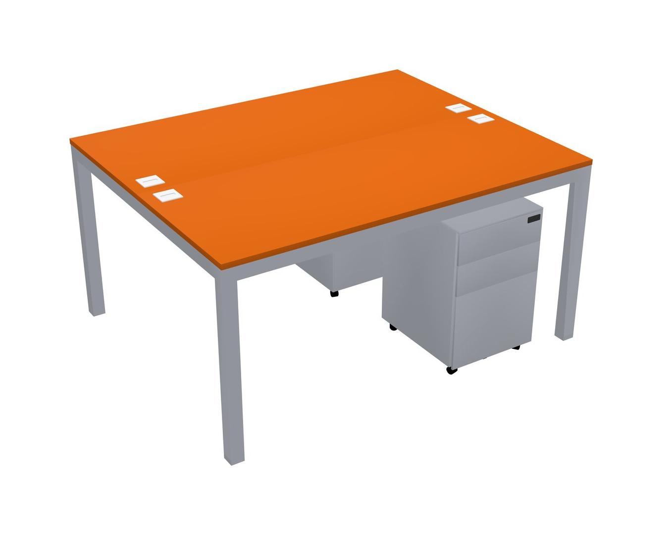 Orange Shared Rectangular Office Desk With Metal Mobile Drawers For 2 Persons