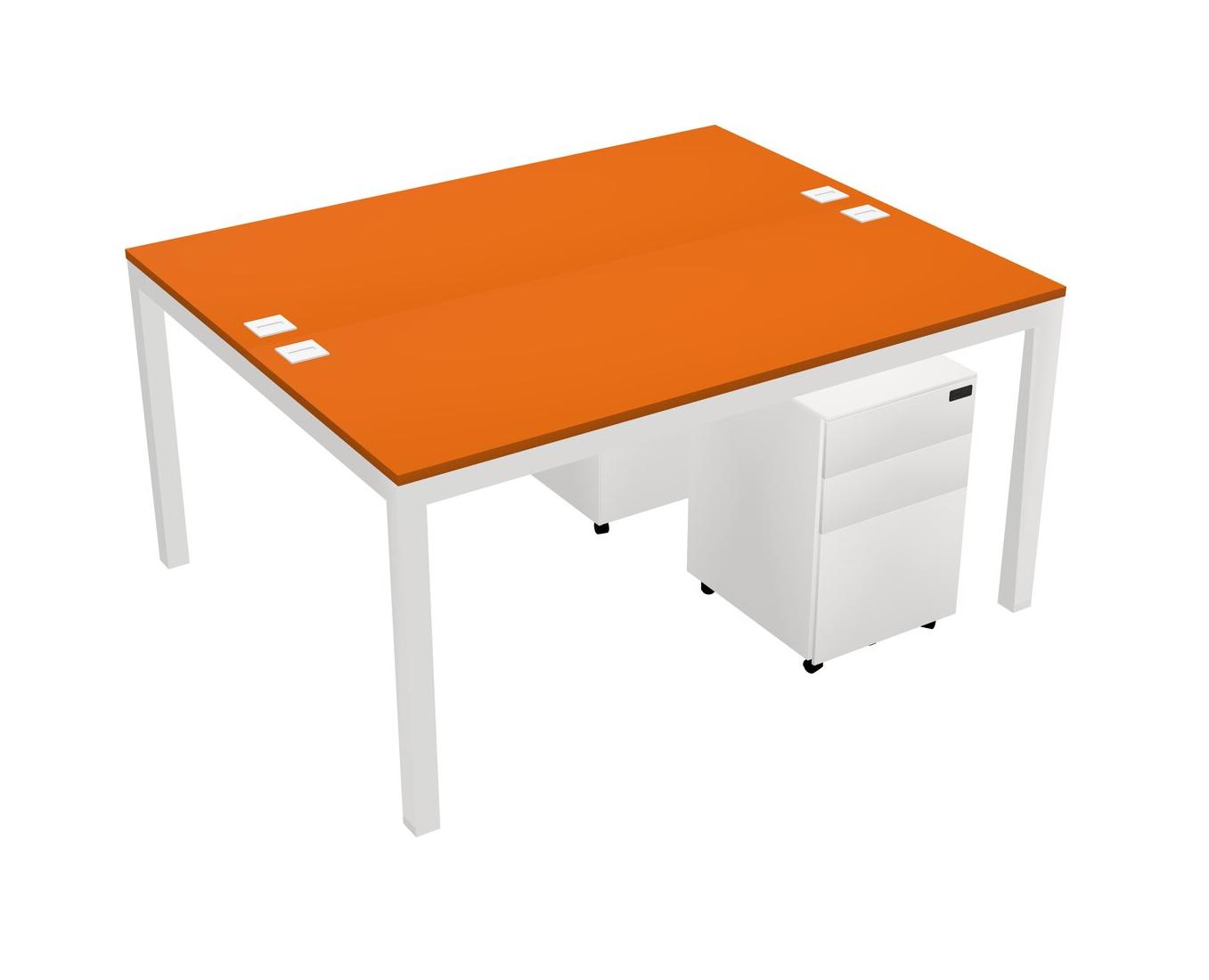 Orange Shared Rectangular Office Desk With Metal Mobile Drawers For 2 Persons