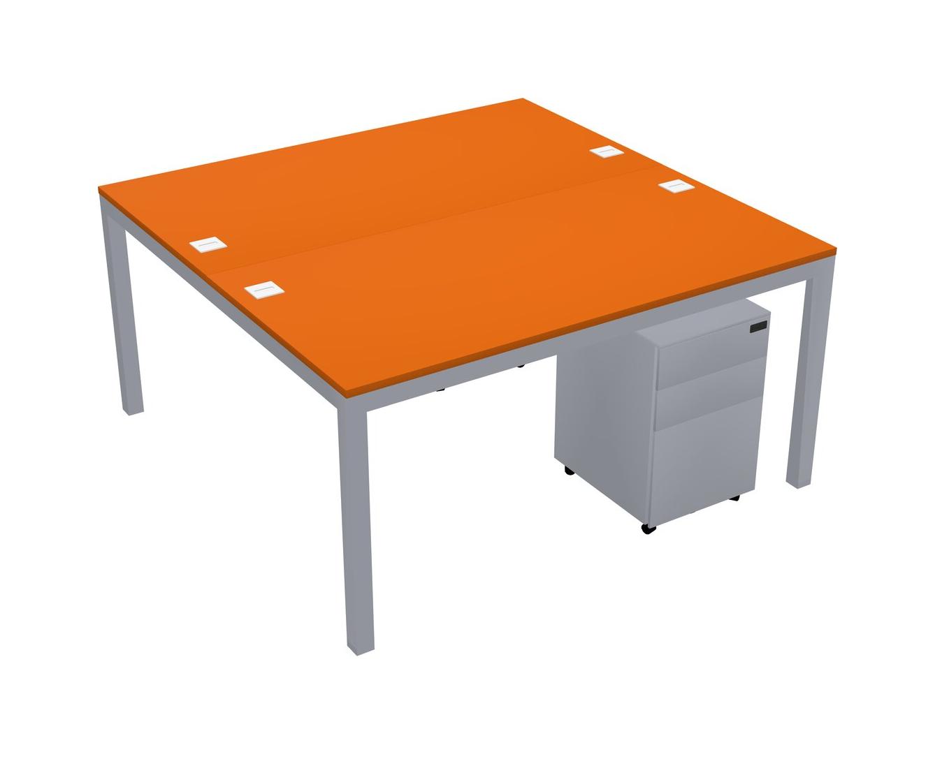 Orange Shared Rectangular Office Desk With Metal Mobile Drawers For 2 Persons