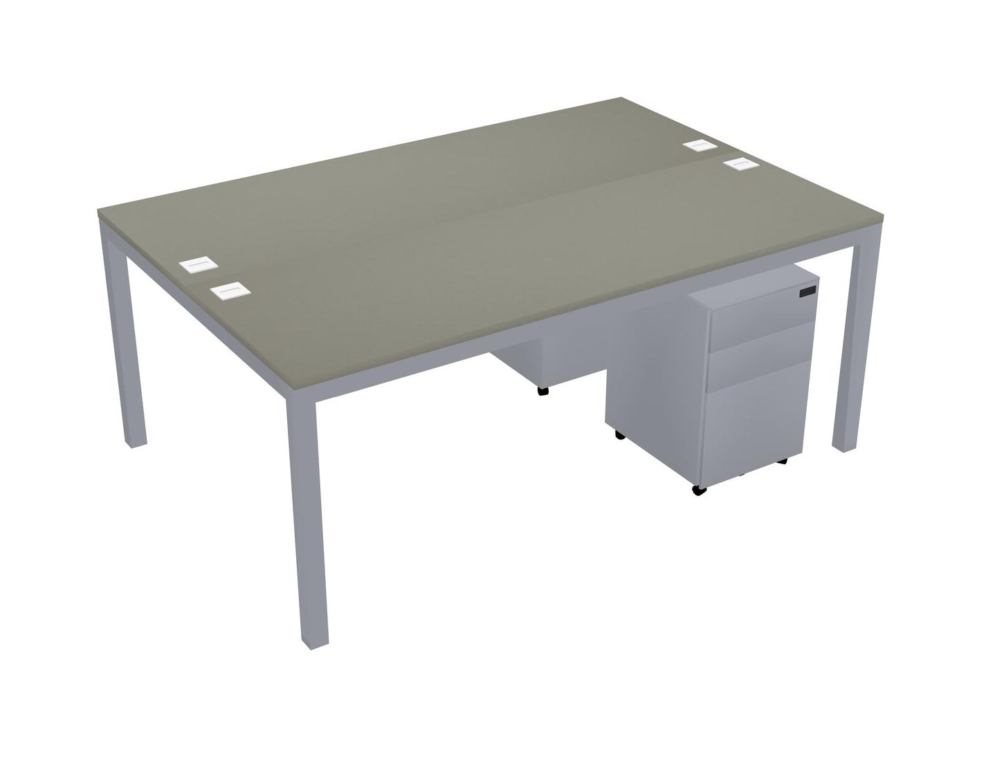 Grey Shadows Shared Rectangular Office Desk With Metal Mobile Drawers For 2 Persons