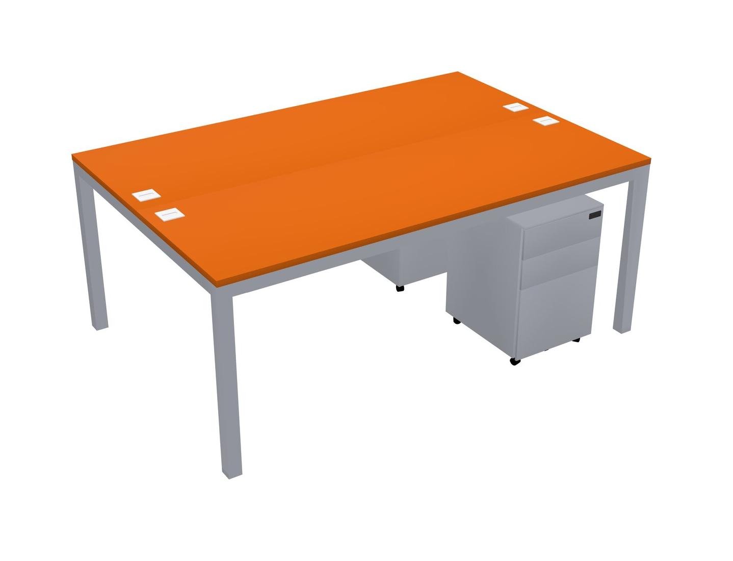 Orange Shared Rectangular Office Desk With Metal Mobile Drawers For 2 Persons
