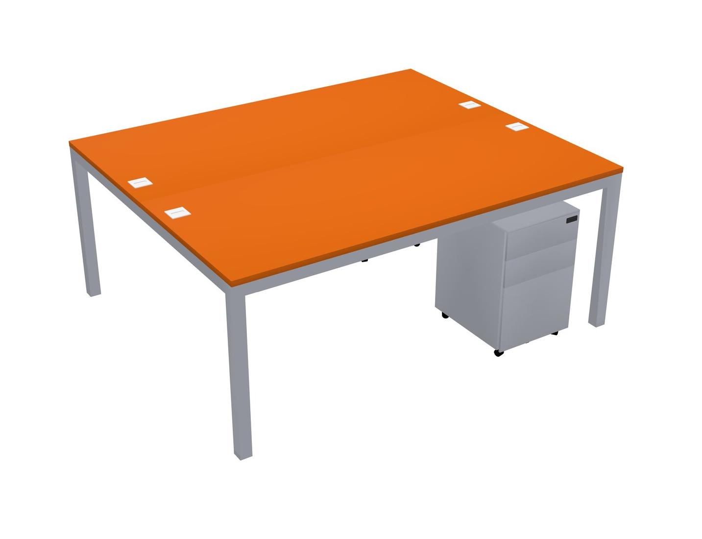 Orange Shared Rectangular Office Desk With Metal Mobile Drawers For 2 Persons