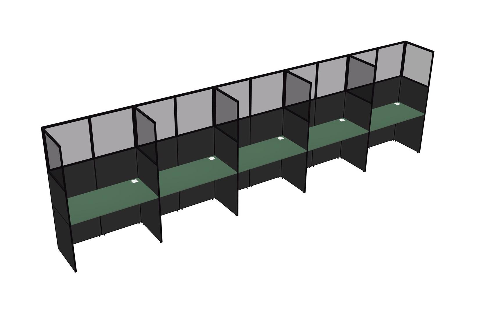 Green Shared Rectangular Office Cubicle Panel System For 5 Persons