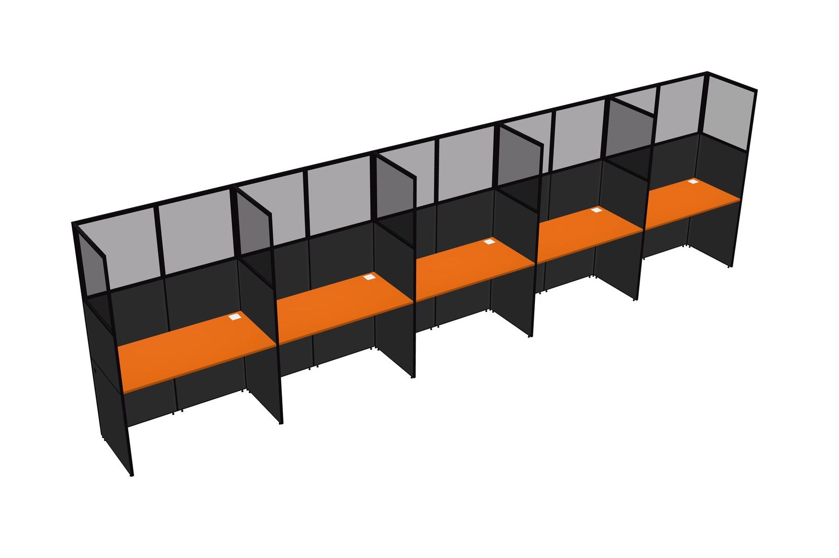 Orange Shared Rectangular Office Cubicle Panel System For 5 Persons