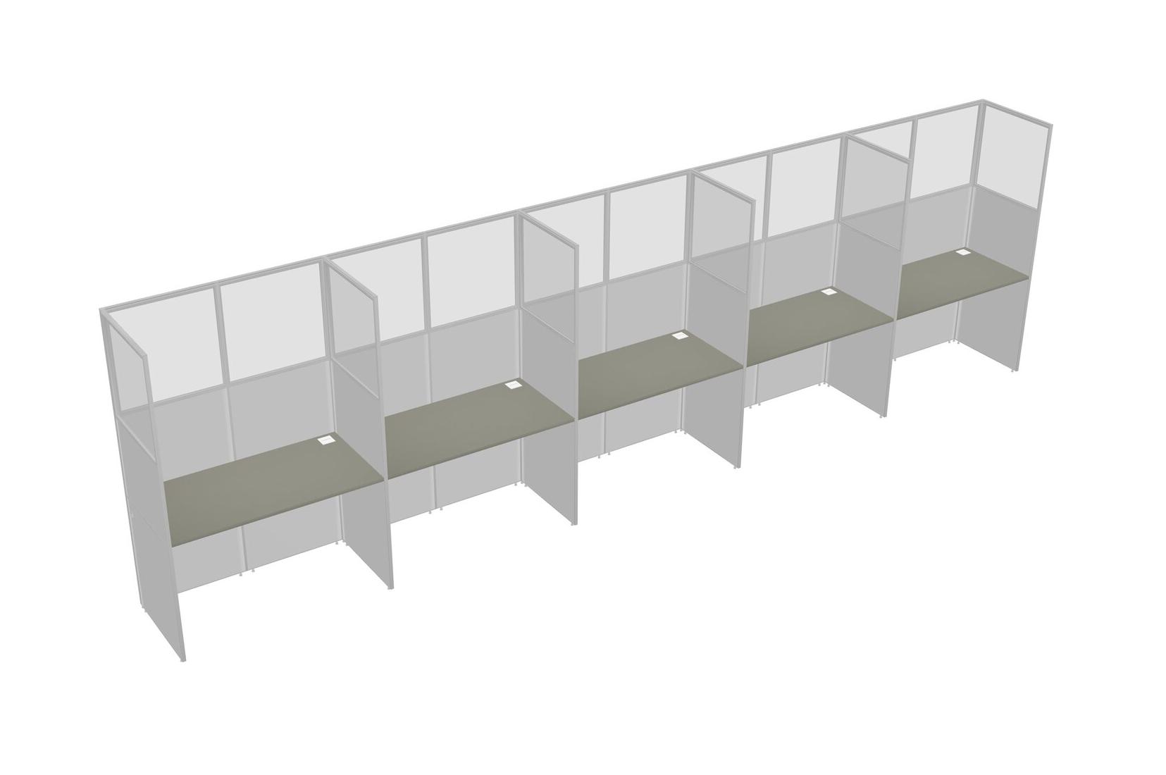 Grey Shadows Shared Rectangular Office Cubicle Panel System For 5 Persons