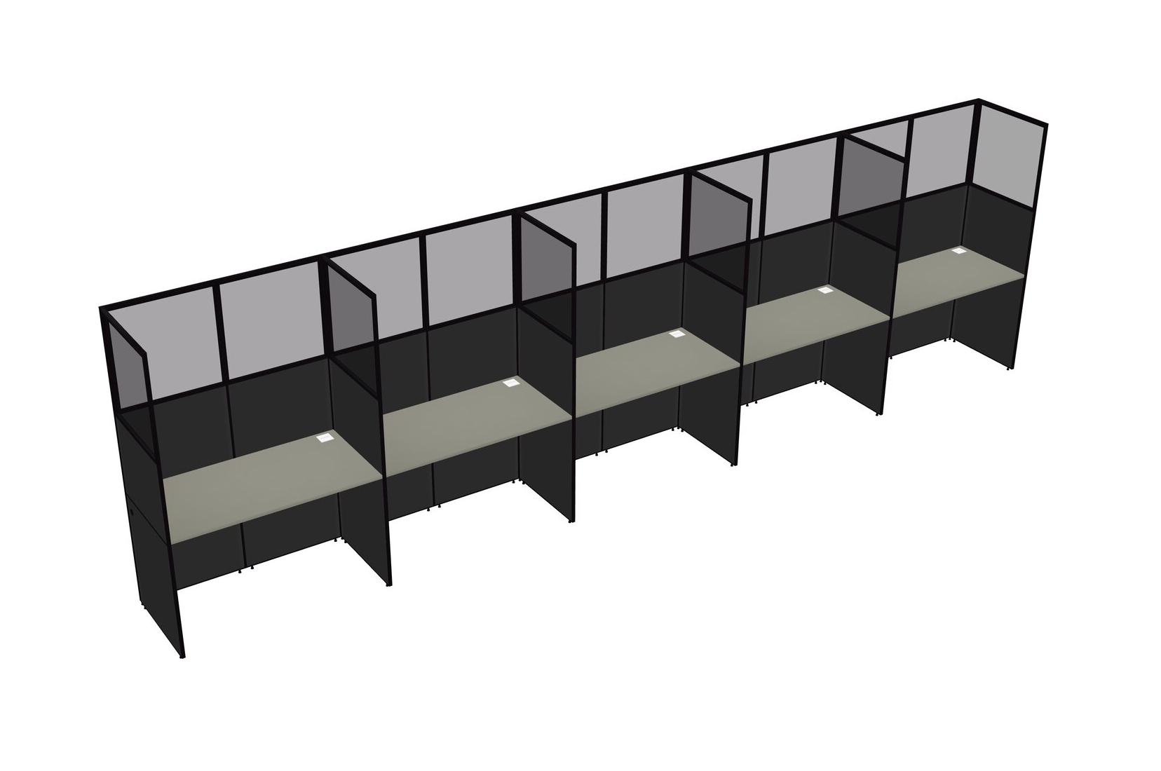 Grey Shadows Shared Rectangular Office Cubicle Panel System For 5 Persons