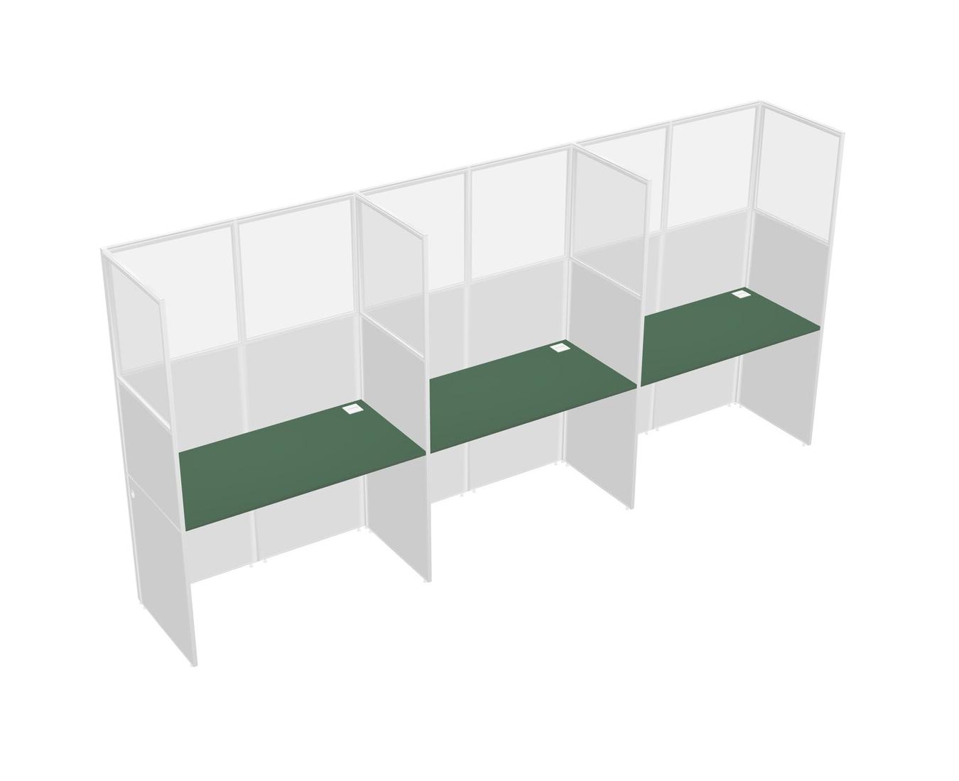 Green Shared Rectangular Office Cubicle Panel System For 3 Persons