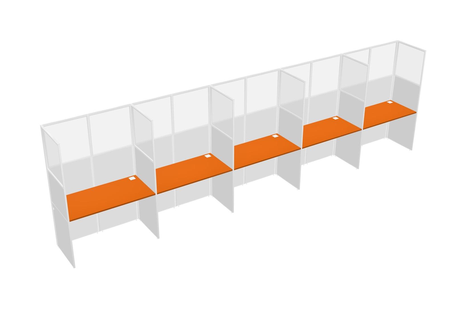 Orange Shared Rectangular Office Cubicle Panel System For 5 Persons