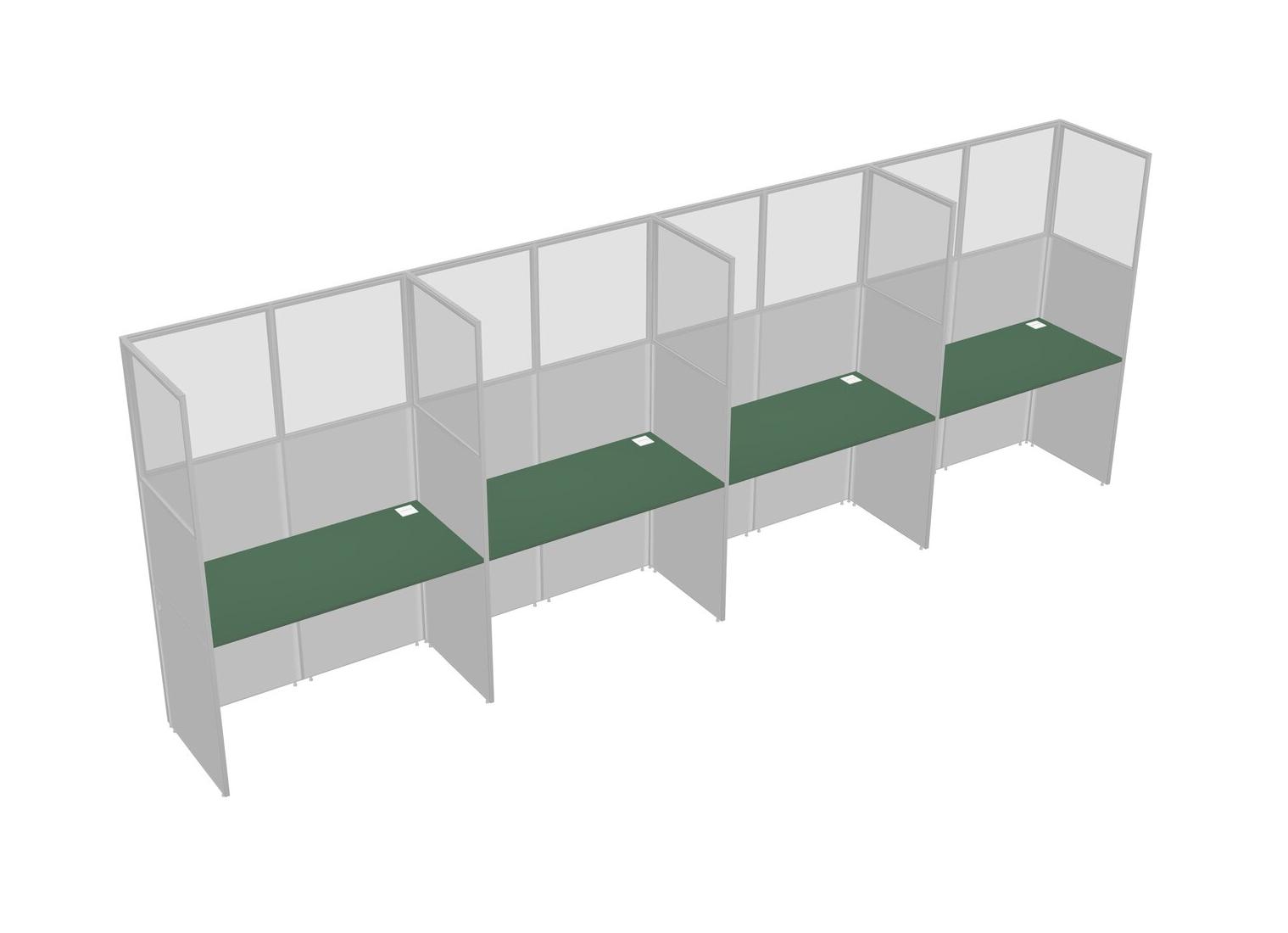Green Shared Rectangular Office Cubicle Panel System For 4 Persons