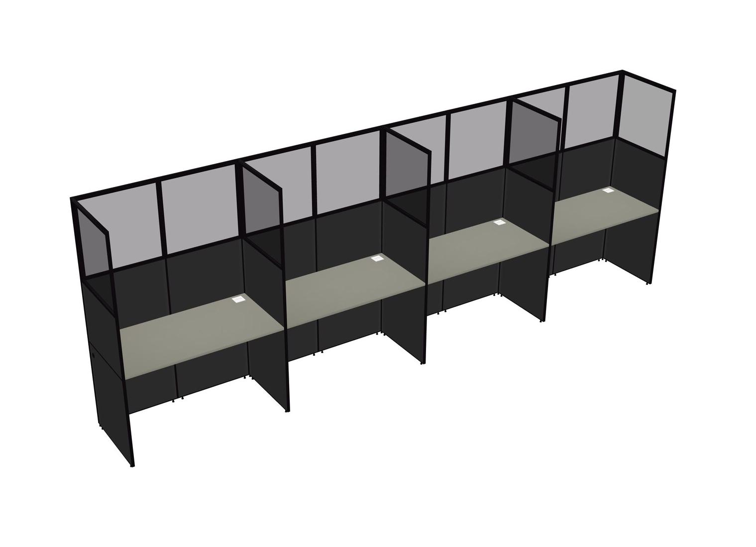 Grey Shadows Shared Rectangular Office Cubicle Panel System For 4 Persons