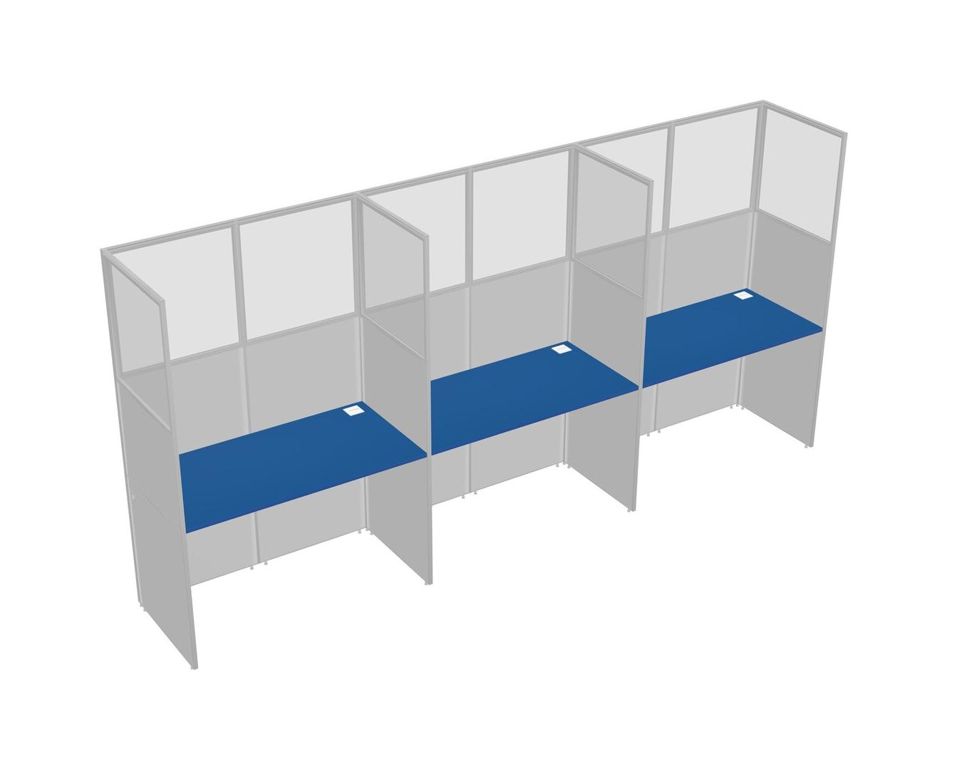 Prism Blue Shared Rectangular Office Cubicle Panel System For 3 Persons