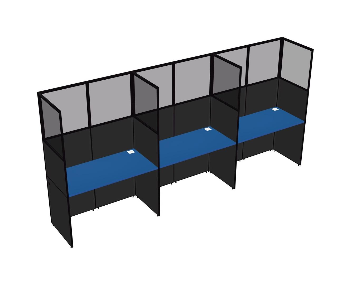 Prism Blue Shared Rectangular Office Cubicle Panel System For 3 Persons