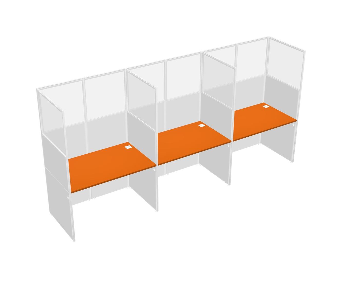 Orange Shared Rectangular Office Cubicle Panel System For 3 Persons