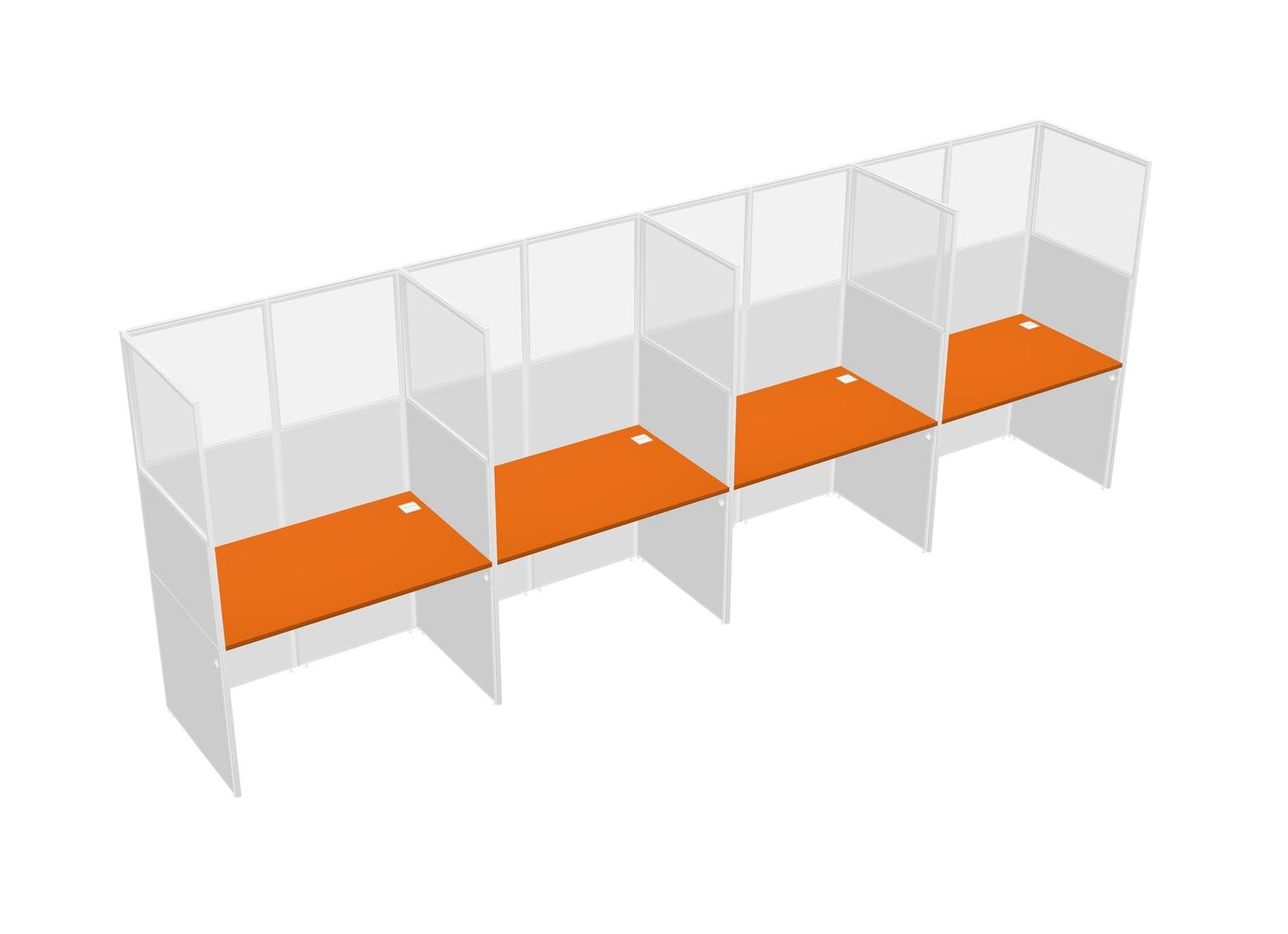 Orange Shared Rectangular Office Cubicle Panel System For 4 Persons