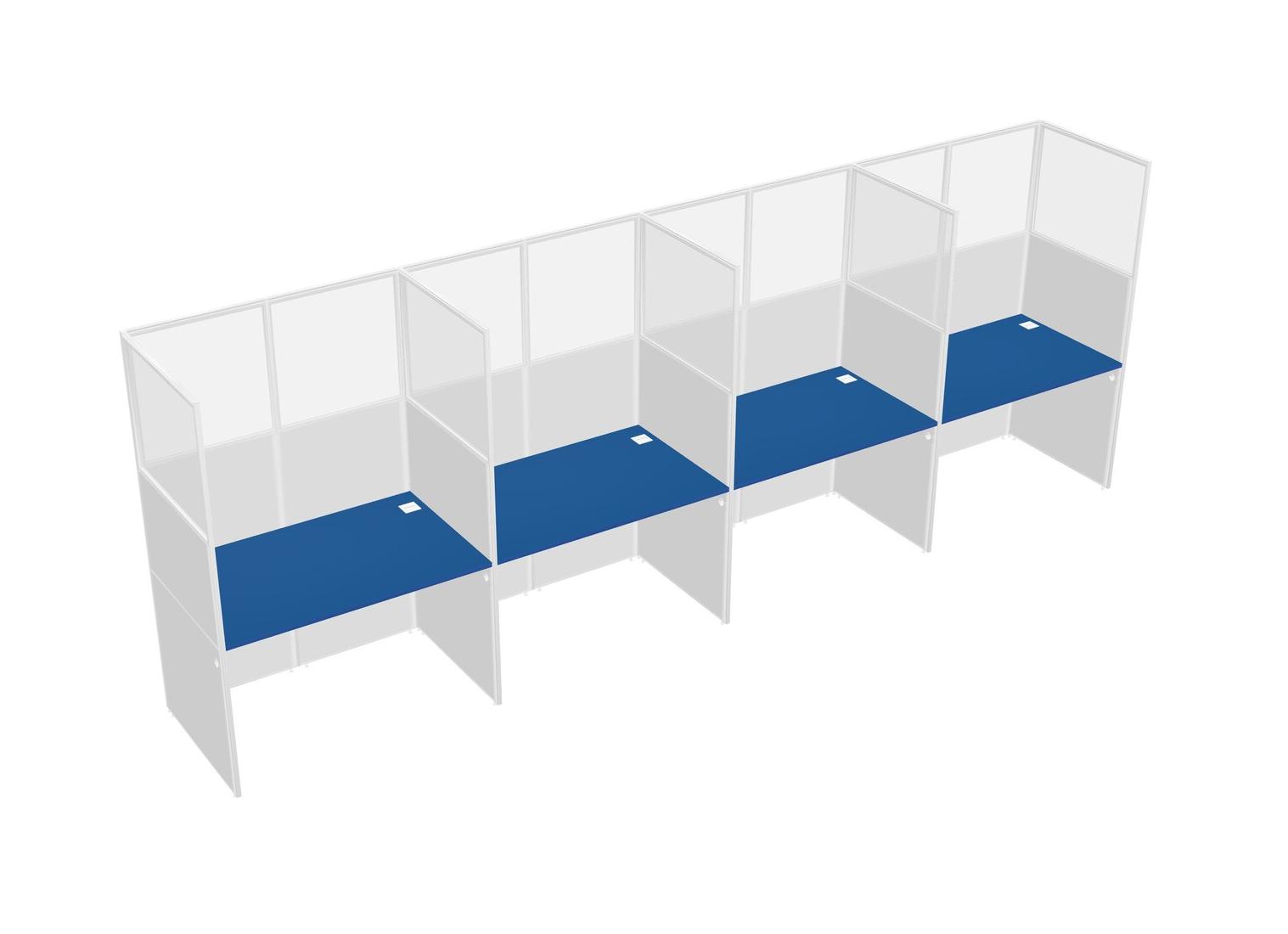 Prism Blue Shared Rectangular Office Cubicle Panel System For 4 Persons