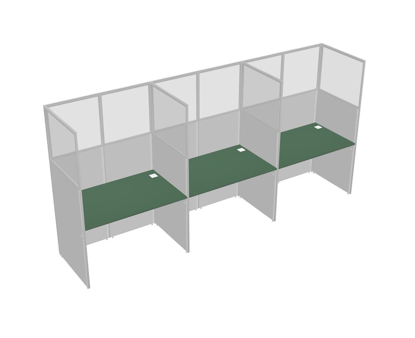 Green Shared Rectangular Office Cubicle Panel System For 3 Persons