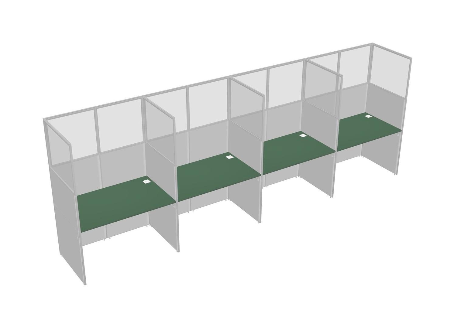 Green Shared Rectangular Office Cubicle Panel System For 4 Persons