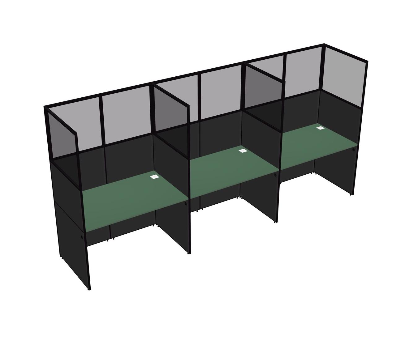 Green Shared Rectangular Office Cubicle Panel System For 3 Persons