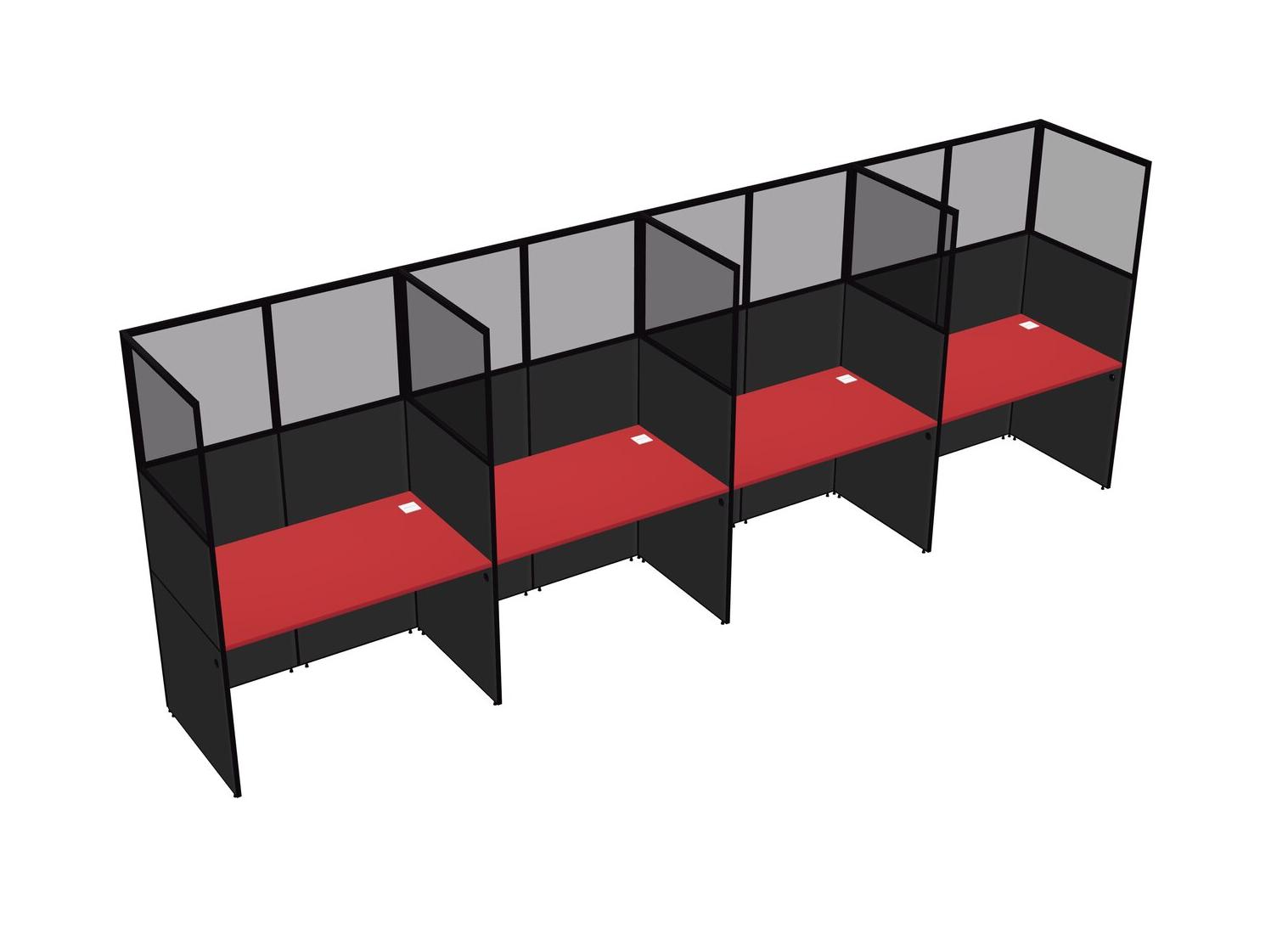 Prism Red Shared Rectangular Office Cubicle Panel System For 4 Persons