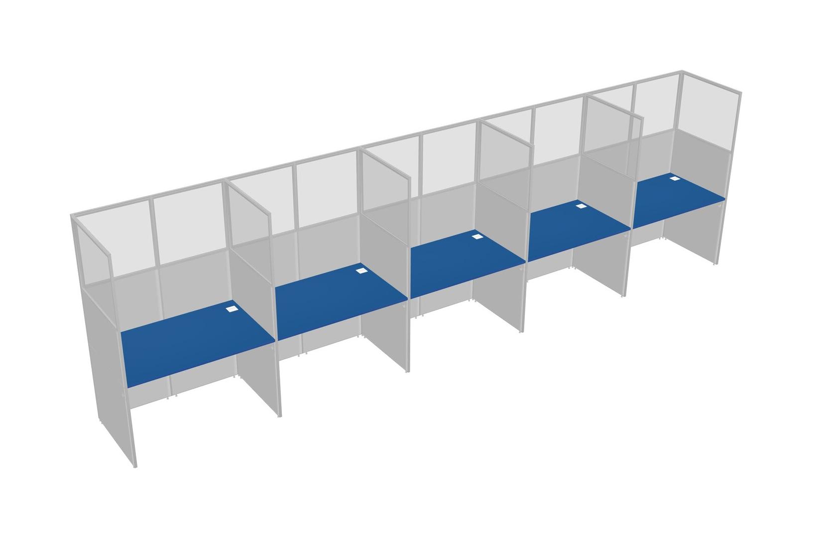 Prism Blue Shared Rectangular Office Cubicle Panel System For 5 Persons