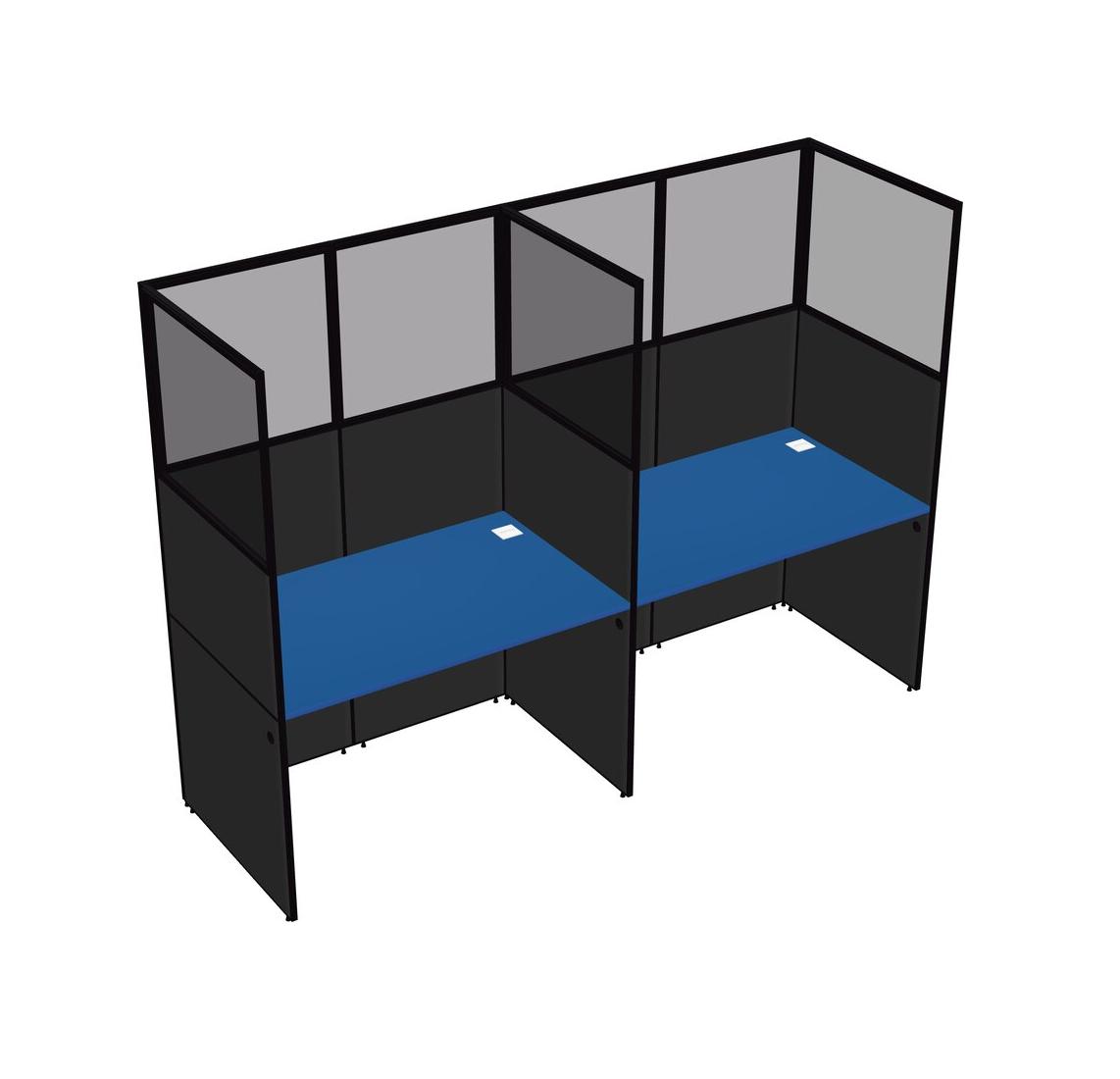Prism Blue Shared Rectangular Office Cubicle Panel System For 2 Persons
