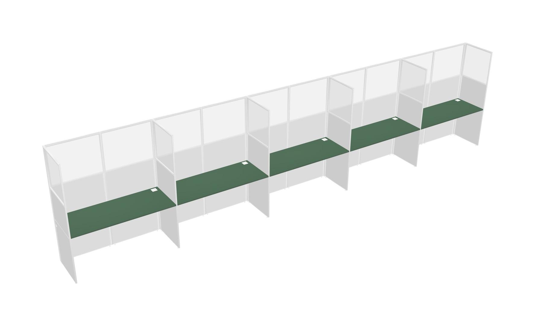 Green Shared Rectangular Office Cubicle Panel System For 5 Persons