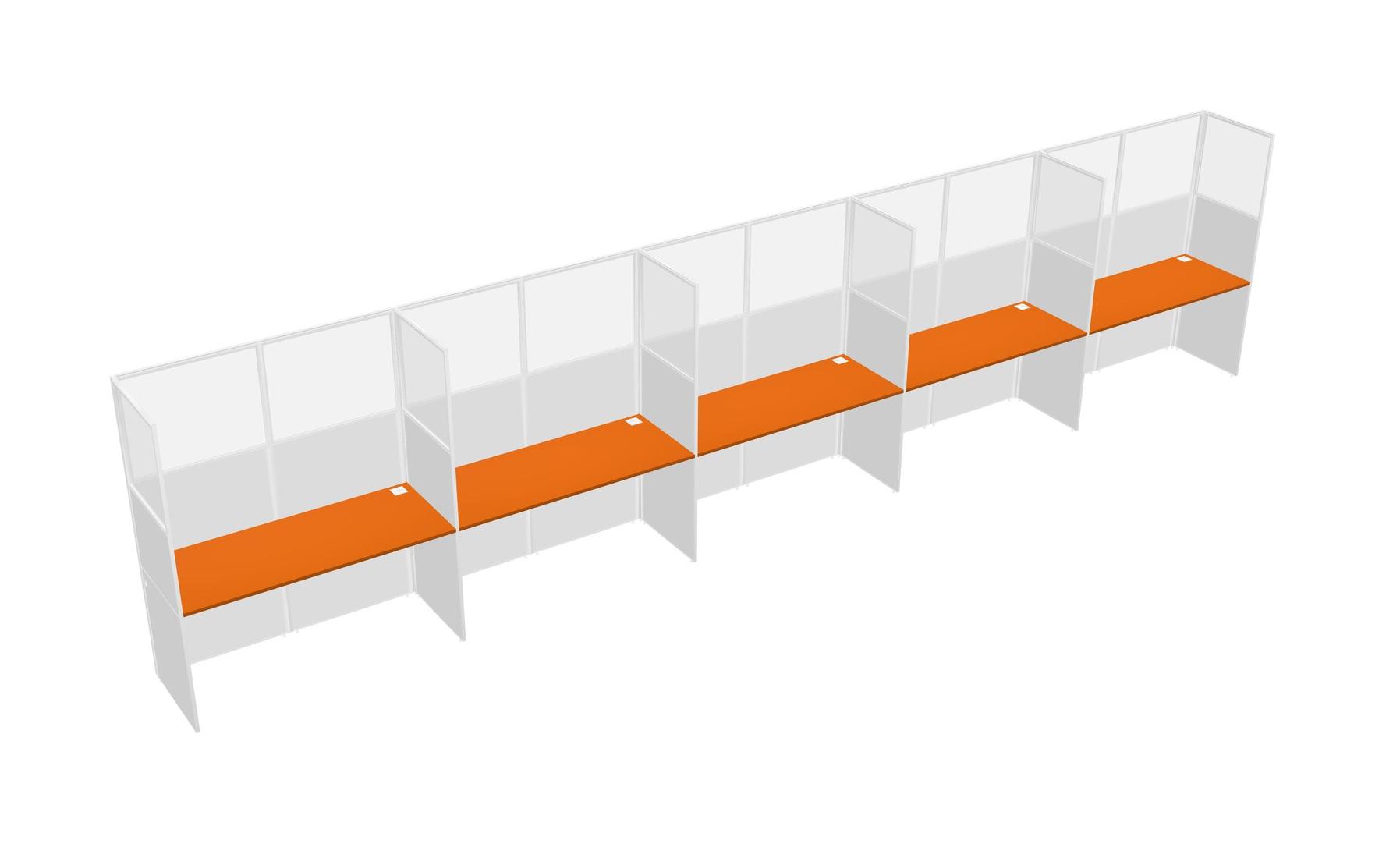 Orange Shared Rectangular Office Cubicle Panel System For 5 Persons