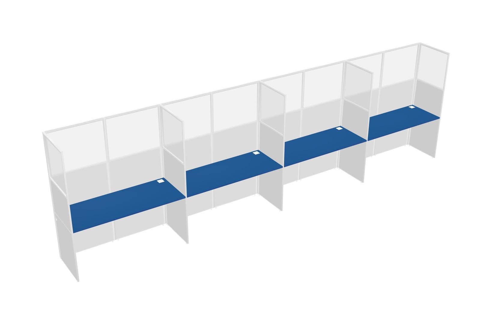 Prism Blue Shared Rectangular Office Cubicle Panel System For 4 Persons