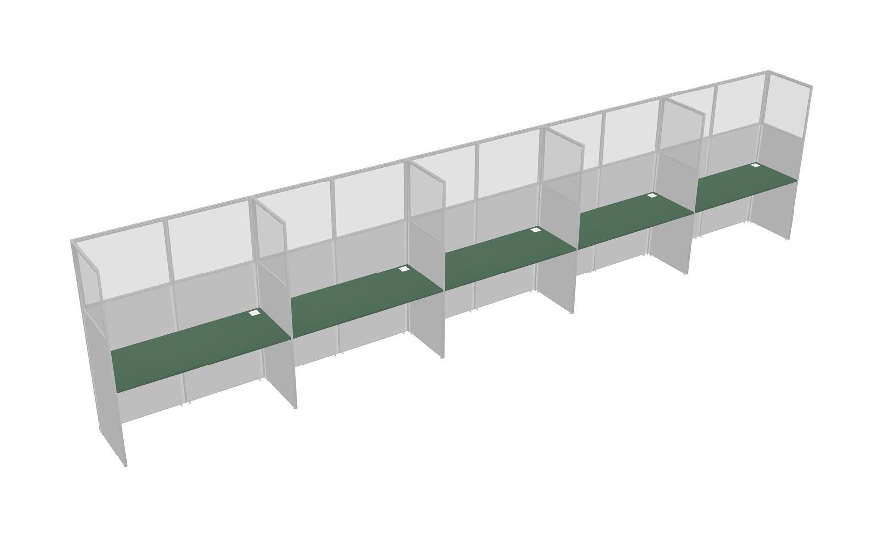 Green Shared Rectangular Office Cubicle Panel System For 5 Persons
