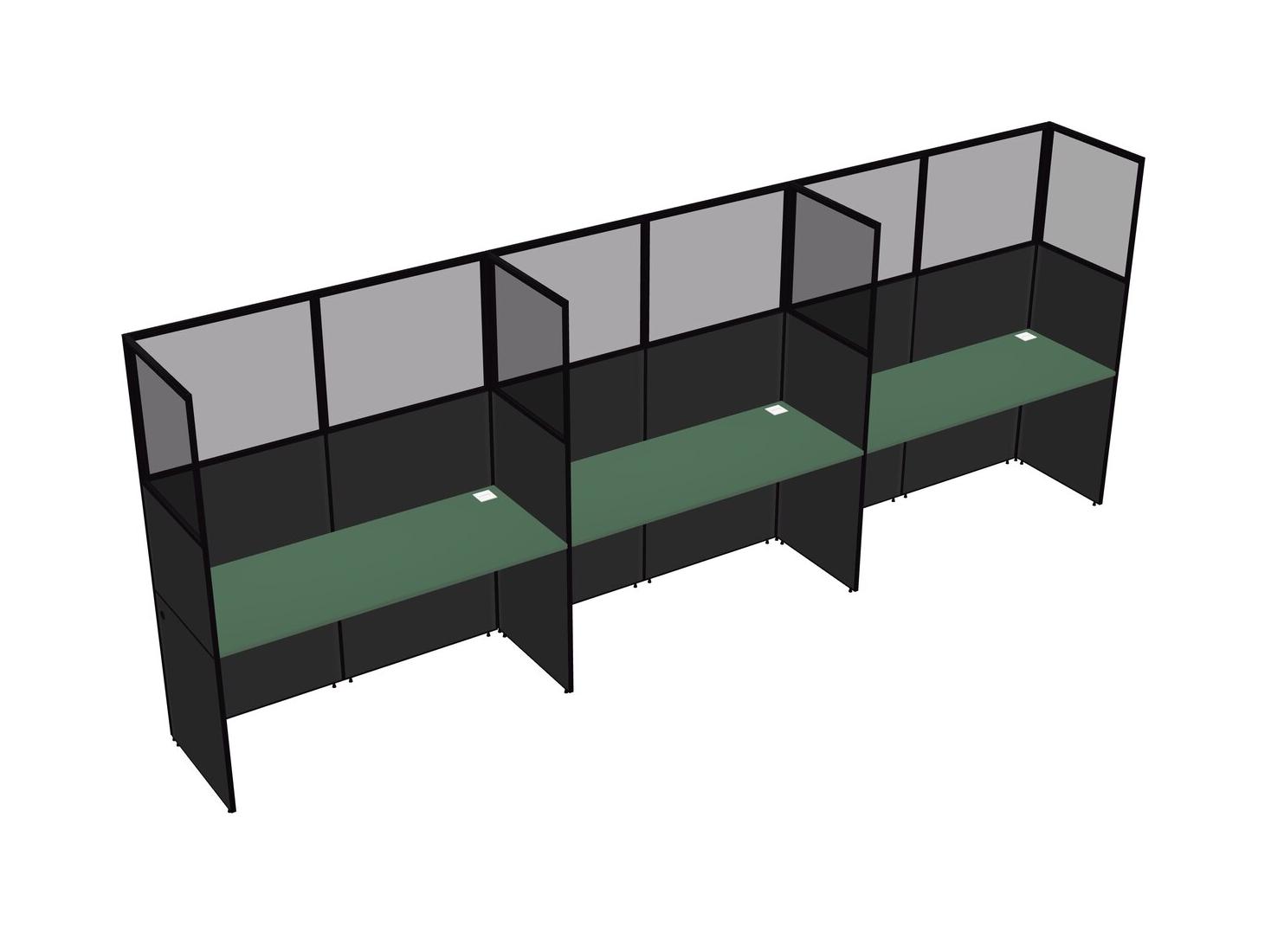 Green Shared Rectangular Office Cubicle Panel System For 3 Persons
