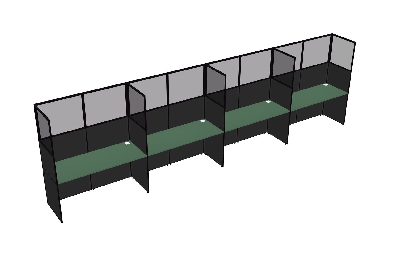 Green Shared Rectangular Office Cubicle Panel System For 4 Persons