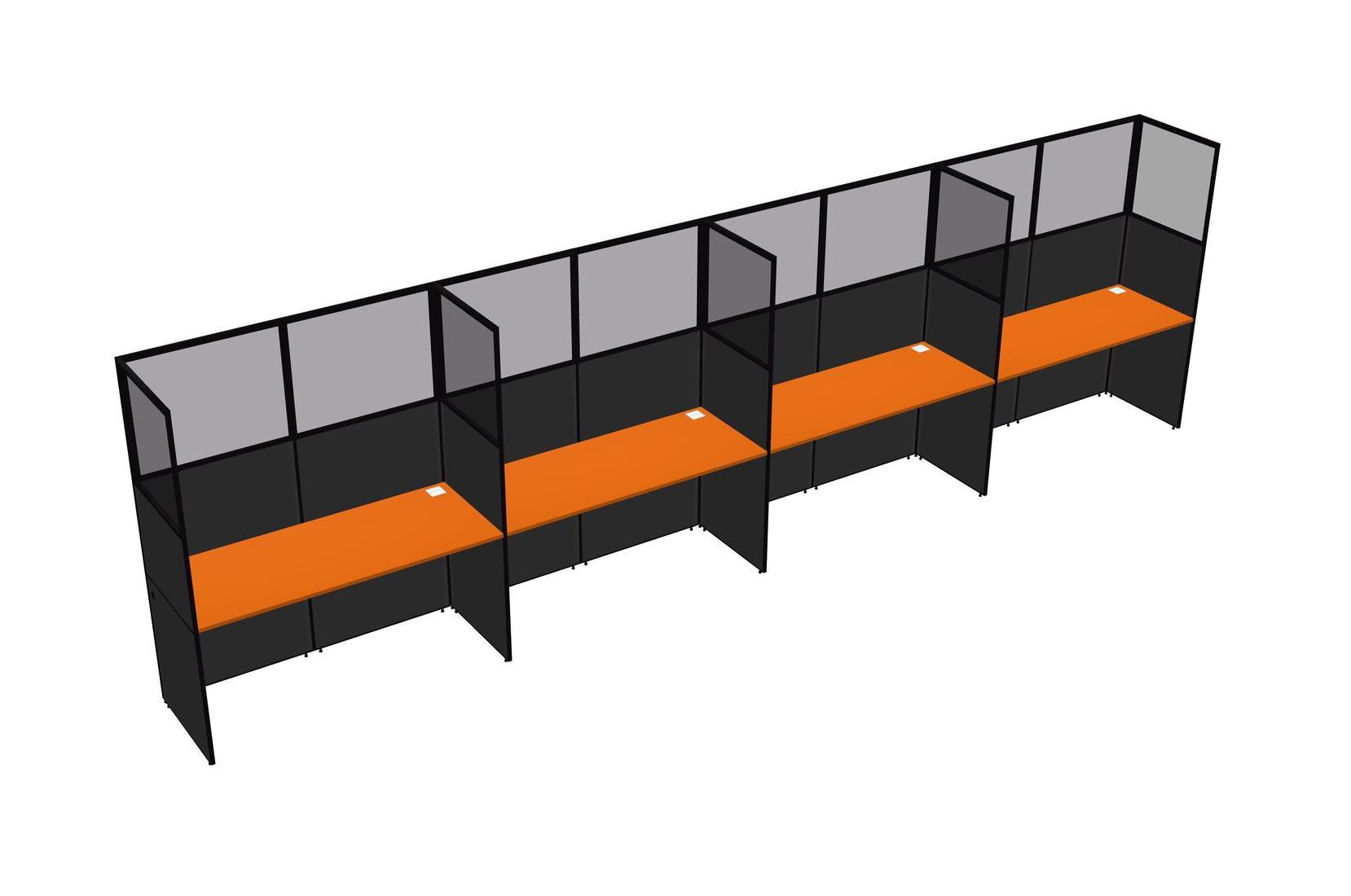 Orange Shared Rectangular Office Cubicle Panel System For 4 Persons