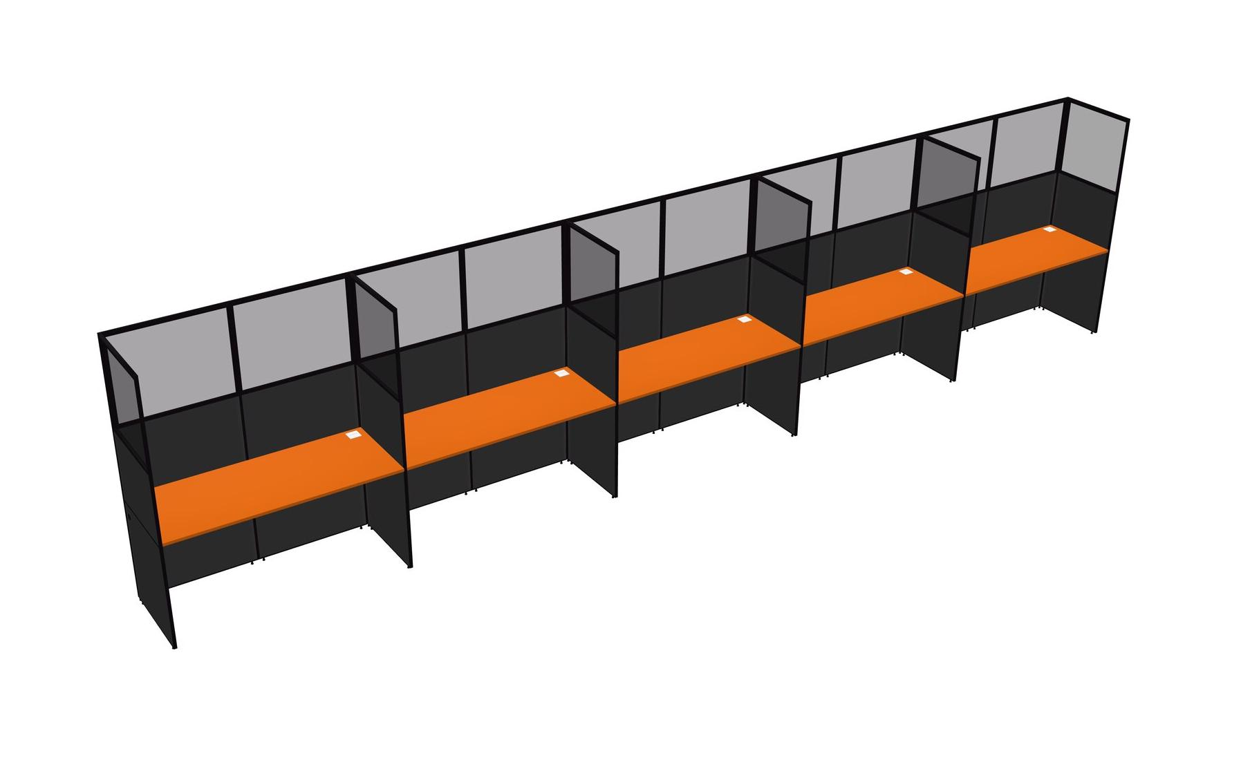 Orange Shared Rectangular Office Cubicle Panel System For 5 Persons