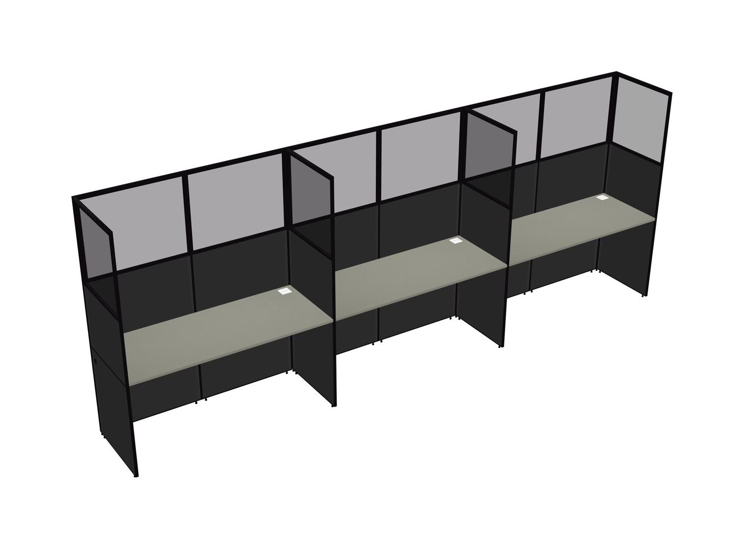 Grey Shadows Shared Rectangular Office Cubicle Panel System For 3 Persons