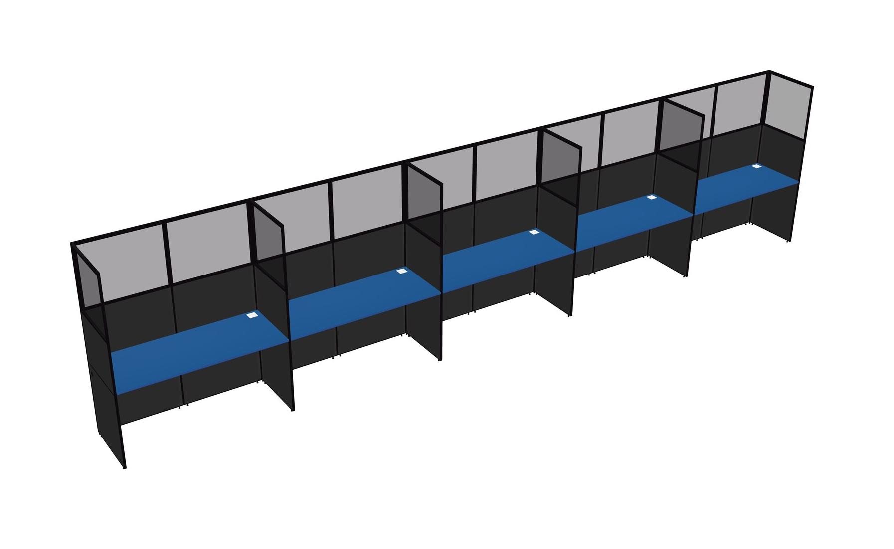 Prism Blue Shared Rectangular Office Cubicle Panel System For 5 Persons